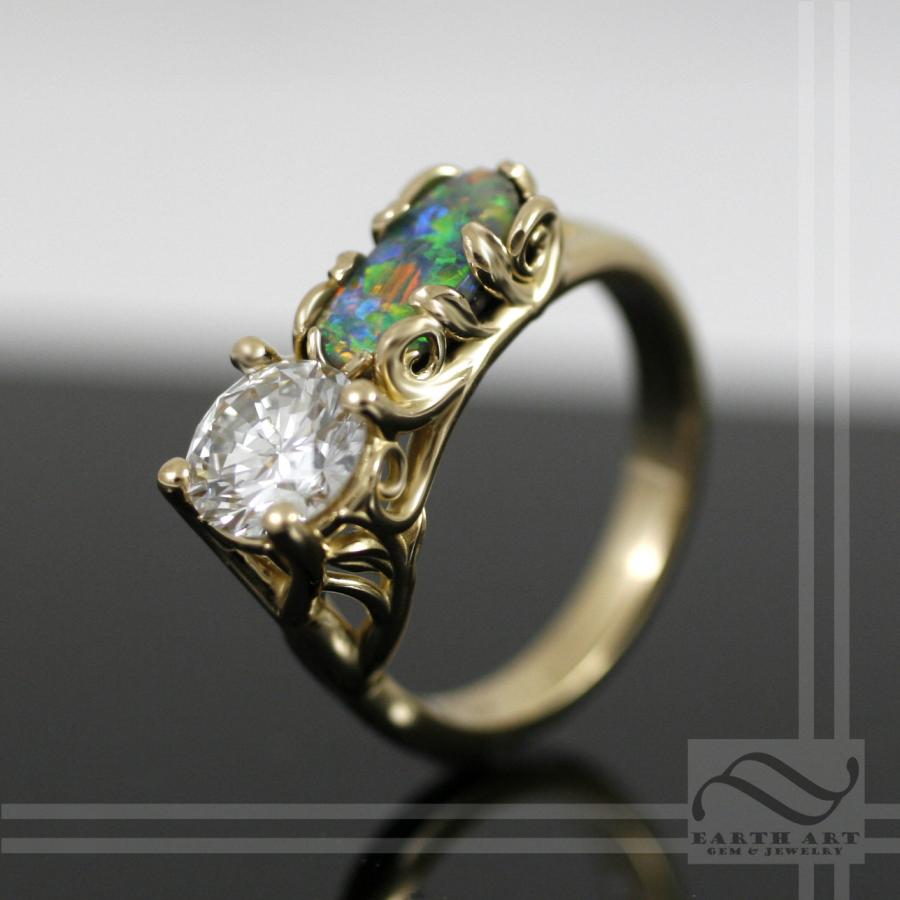 Opal and Diamond in 14k rose gold