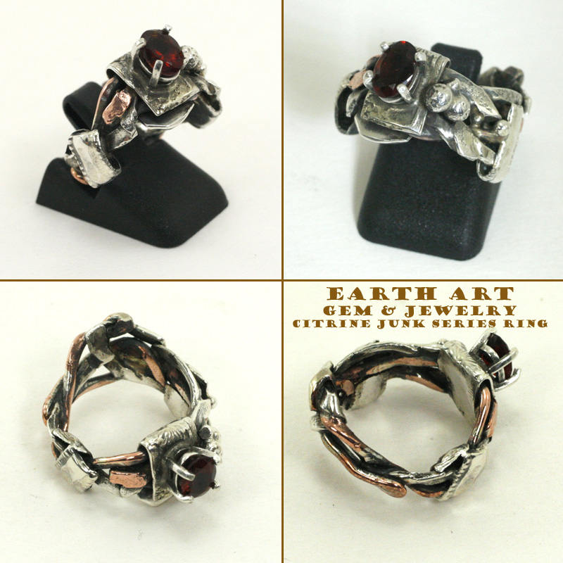 One of my Junk series rings which was made from sterling silver and Copper and has a madera citrine gemstone mounted on top. A fun and rugged band very unique and surprisingly comfortable!
