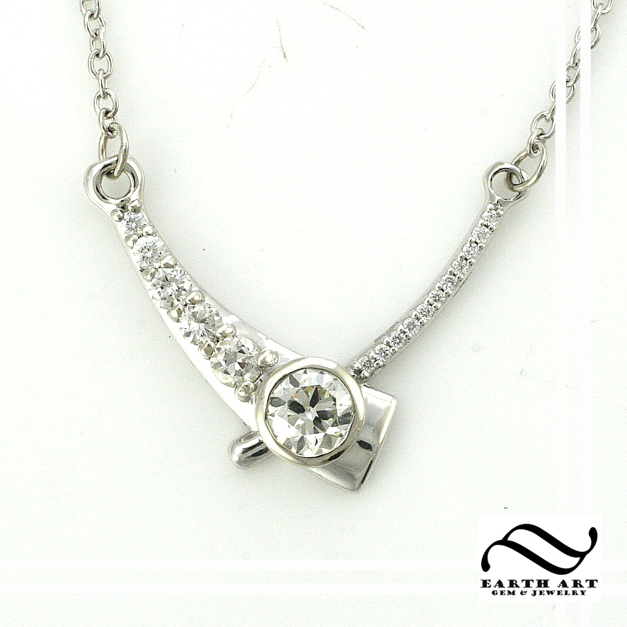 This was a fun piece to make, I was supplied with an assortment of loose diamonds and together, the customer and I developed this design. It utilized all of their stones, and only required a few extra stones to supplement the design. Then crafted in white gold with a white gold chain.